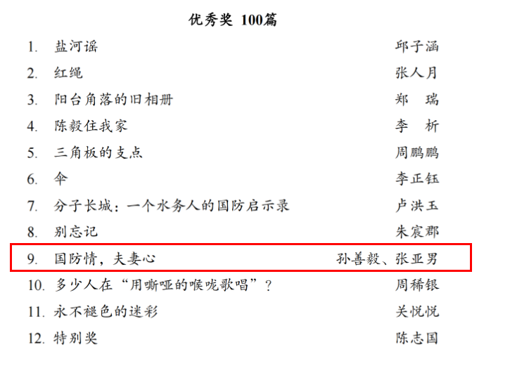 第二届全民国防教育主题征文大赛我校获奖作品